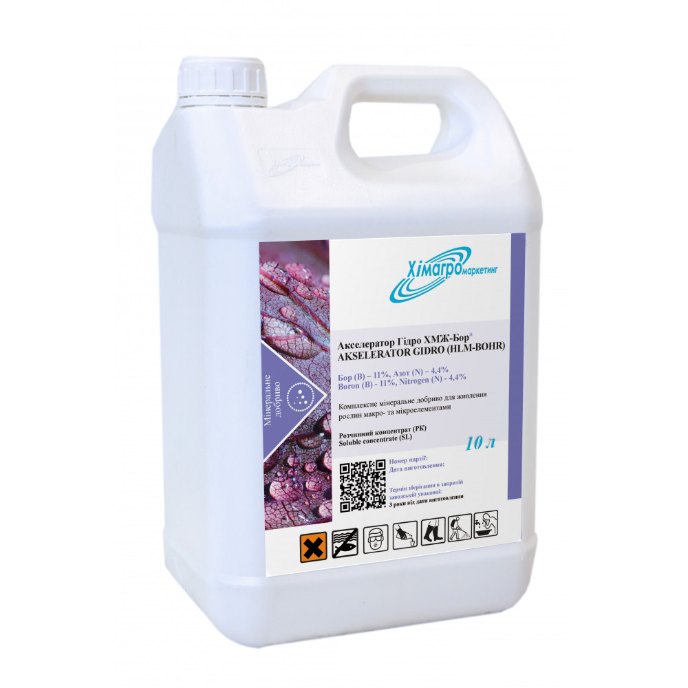 Акселератор Гідро Бор, завдяки рідкій формі легко засвоюється і забезпечує усунення дефіциту бору в рослинах.