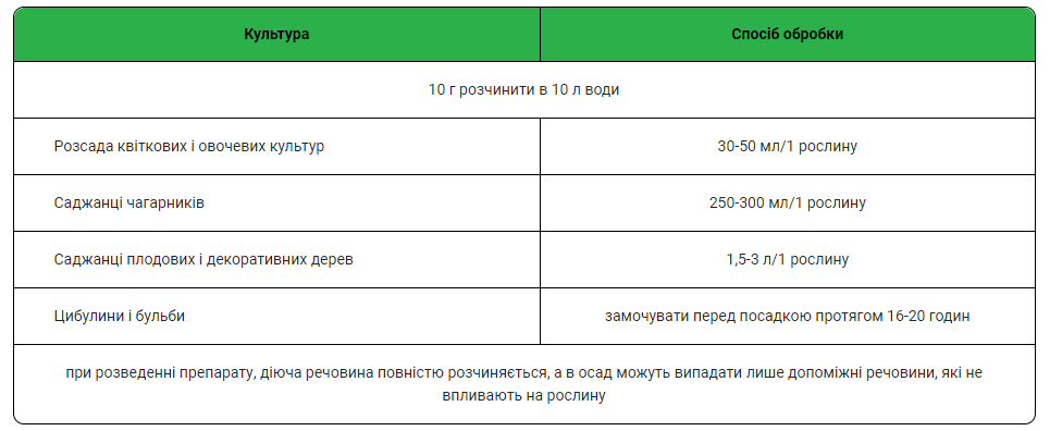 - поліпшує приживання розсади овочевих і квіткових культур під час пересаджування;