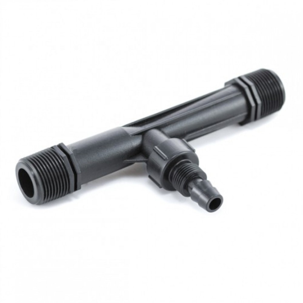 Інжектор Вентурі 1" Presto-PS (VI-0110-H) використовується при побудові систем крапельного зрошення будь-якого виду. Призначений для дозованої подачі у воду органічних та неорганічних водорозчинних добрив. Монтується інжектор після фільтра очистки води в розрив магістрального трубопроводу за допомогою обвідного вузла (байпаса) відповідного діаметру. Забір добрив з ємкості відбувається через шланг, оснащений фільтром та регулювальним краном. Рекомендований робочий тиск на вході 2 атм. Для забезпечення коректної роботи інжектора діаметр магістральної труби має бути на 1/2" більший за діаметр інжектора. Виготовляється інжектор із високоякісного первинного пластику, стійкого до усіх видів добрив та ультрафіолетового випромінювання.