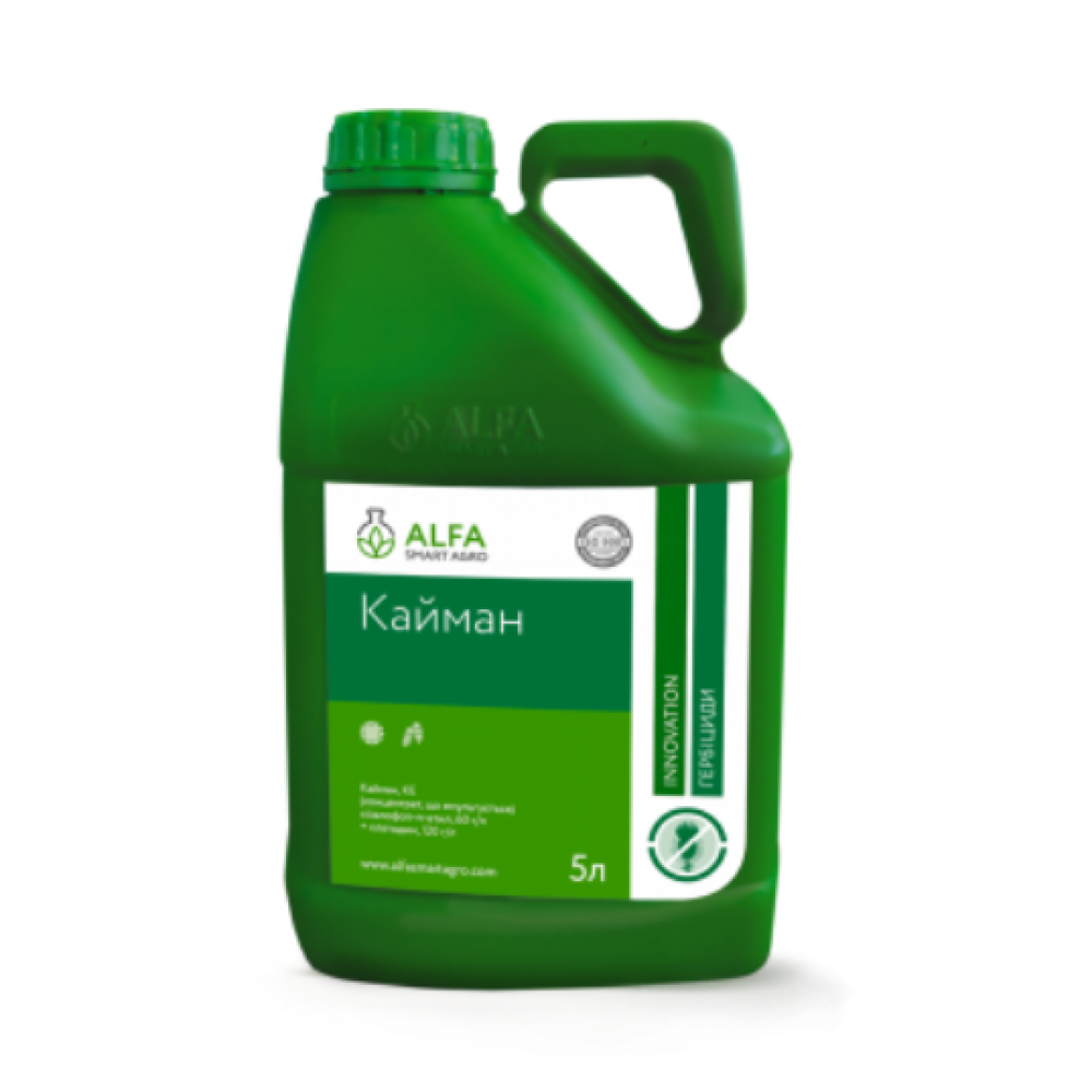 Проникаючи через листя та стебла чутливих бур’янів, клетодим та хізалофоп-п-етил концентруються у точках росту пагонів та кореневищ. Ріст бур’янів зупиняється впродовж доби після застосування. За рахунок наявності клетодиму в складі Кайману візуальні симптоми гербіцидної дії проявляються дуже швидко – через 3-5 днів у вигляді побуріння й відмирання точок росту та набуття листям хлоротичного забарвлення. Повна загибель надземної частини настає через 7-12 днів. Впродовж 14-21 днів відбувається засихання кореневищ. Гербіцид Кайман завдяки унікальному поєднанню діючих речовин із різних хімічних груп забезпечує контроль комплексу злакових бур’янів та володіє покращеною селективністю до культурних рослин, насамперед, таких як соняшник та соя.