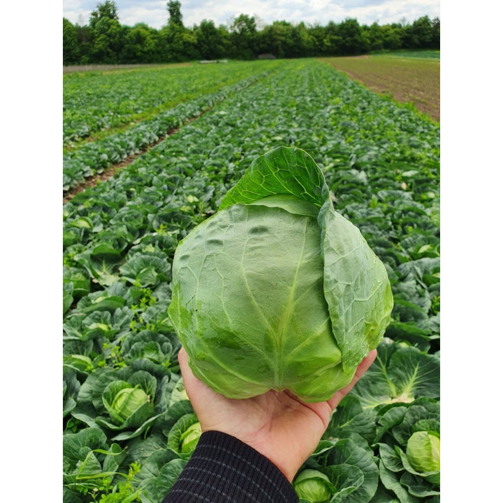 Вегетаційни період (після висадки розсади): 43-48 днів. Вага: 0,6-1,2 кг. Форма: округла. Колір: світло-зелений