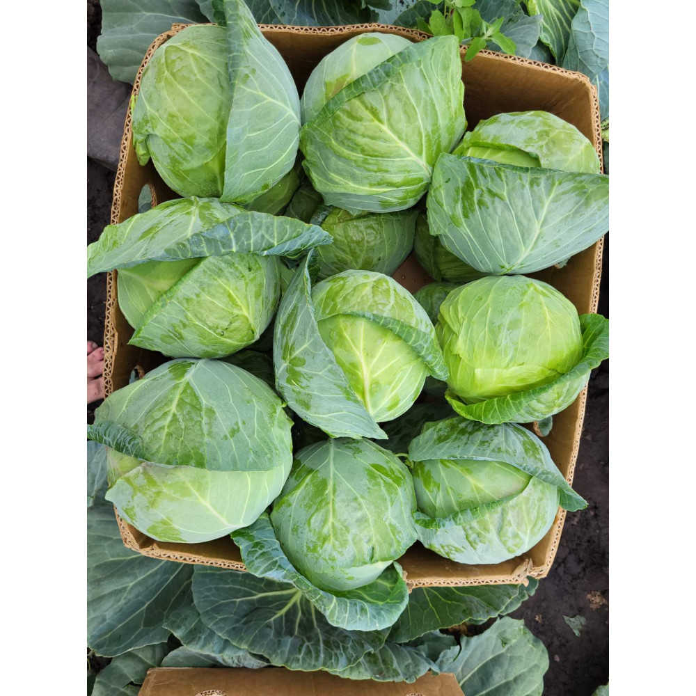 Вегетаційни період (після висадки розсади): 55-65 днів. Вага: 1,5-2,5 кг.Форма: округла. Колір: світло-зелений