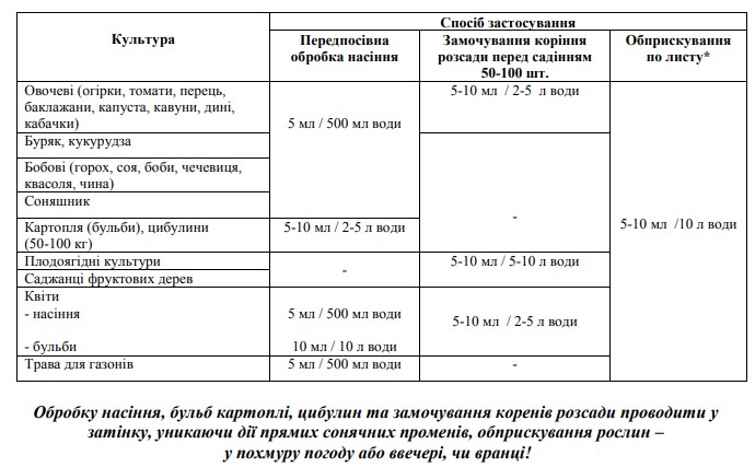 Закріплює біопрепарати та інші засоби захисту та живлення рослин на посадковому матеріалі, забезпечує їх тісний контакт з обробленою поверхнею.