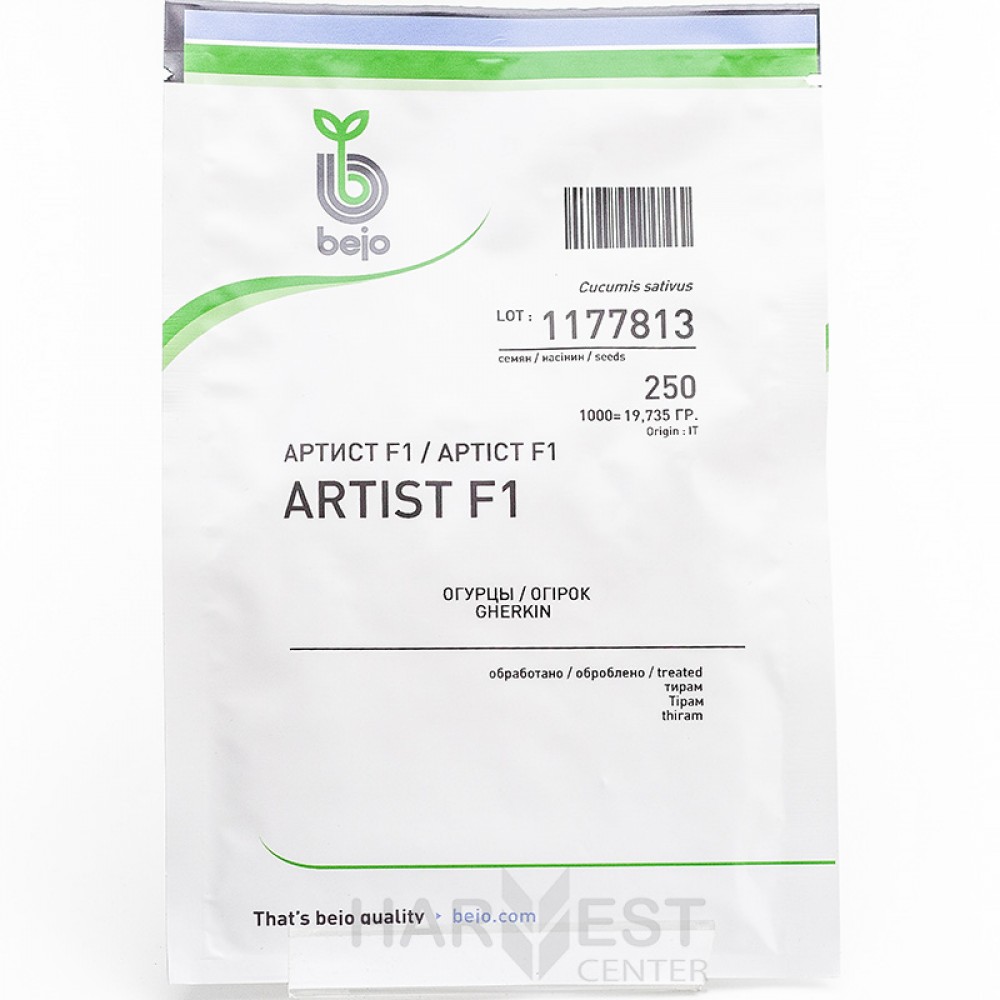 Артіст F1 – надранній партенокарпічний гібрид огірка, вирізняється високою врожайністю. Рослина генеративного типу, відкрита, збалансована. Плоди щільні, однорідні, забарвлення – від зеленого до темно-зеленого. Насіннєва камера маленька. Гібрид дуже простий у догляді, вирощується переважно в теплицях.