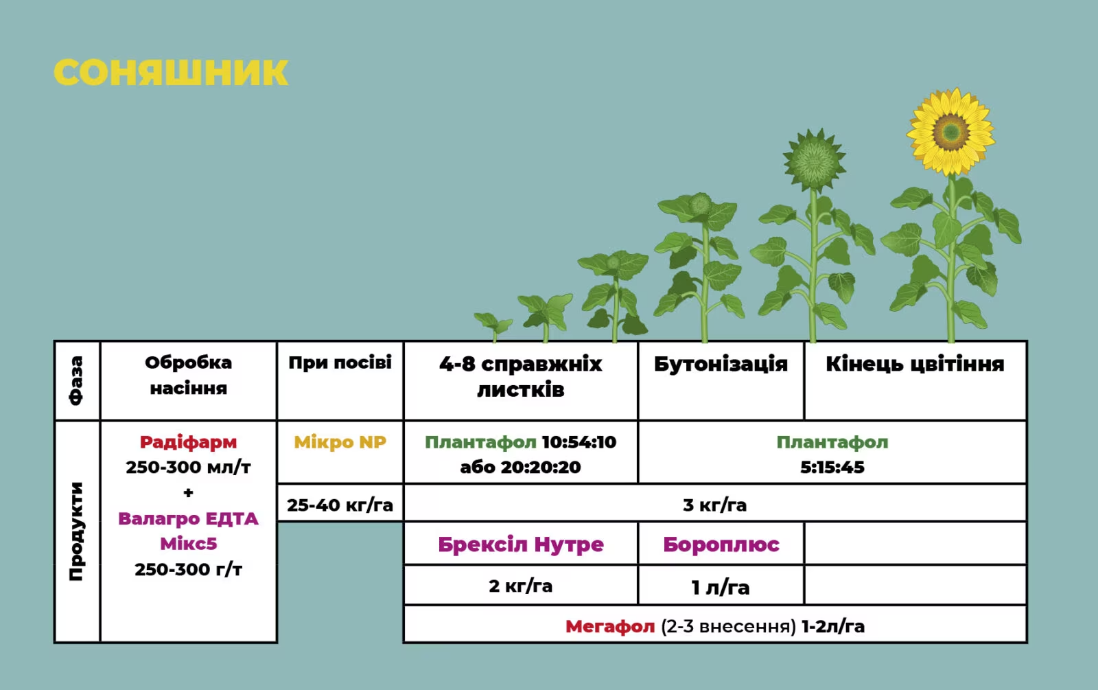 Програма живлення для томатів закритого ґрунту від італійської компанії Valagro Система захисту яблуні від компанії Himagro M Програма живлення для озимих колосових культур від італійської компанії Valagro Система захисту кісточкових культур від компанії Himagro M Гербіциди. Загальні характеристики, видиПрограма живлення для соняшника від італійської компанії Valagro