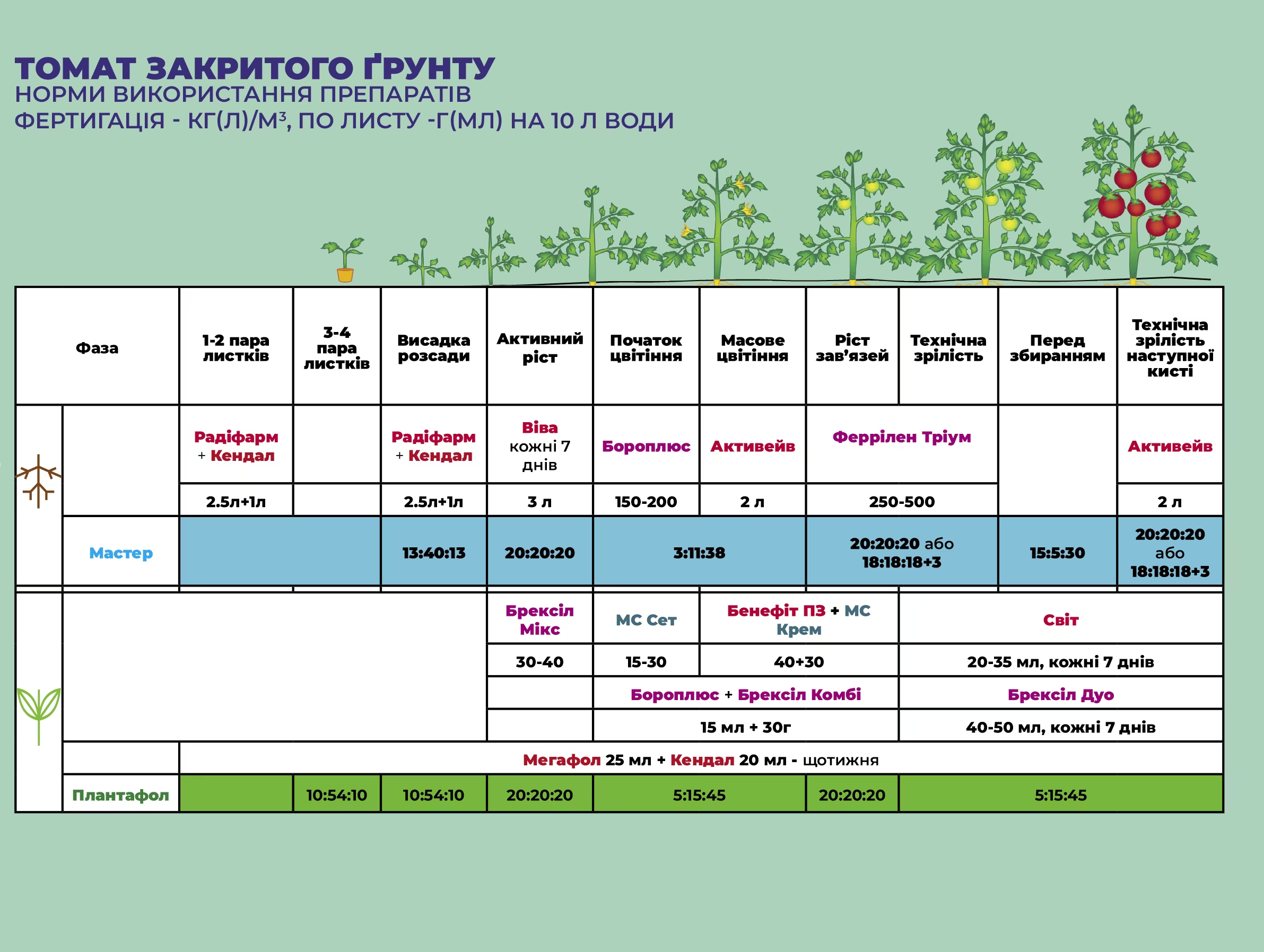 Програма живлення для томатів закритого ґрунту від італійської компанії Valagro Система захисту яблуні від компанії Himagro M Програма живлення для озимих колосових культур від італійської компанії Valagro Система захисту кісточкових культур від компанії Himagro M Гербициды. Общие характеристики, видыПрограма живлення для томатів закритого ґрунту від італійської компанії Valagro