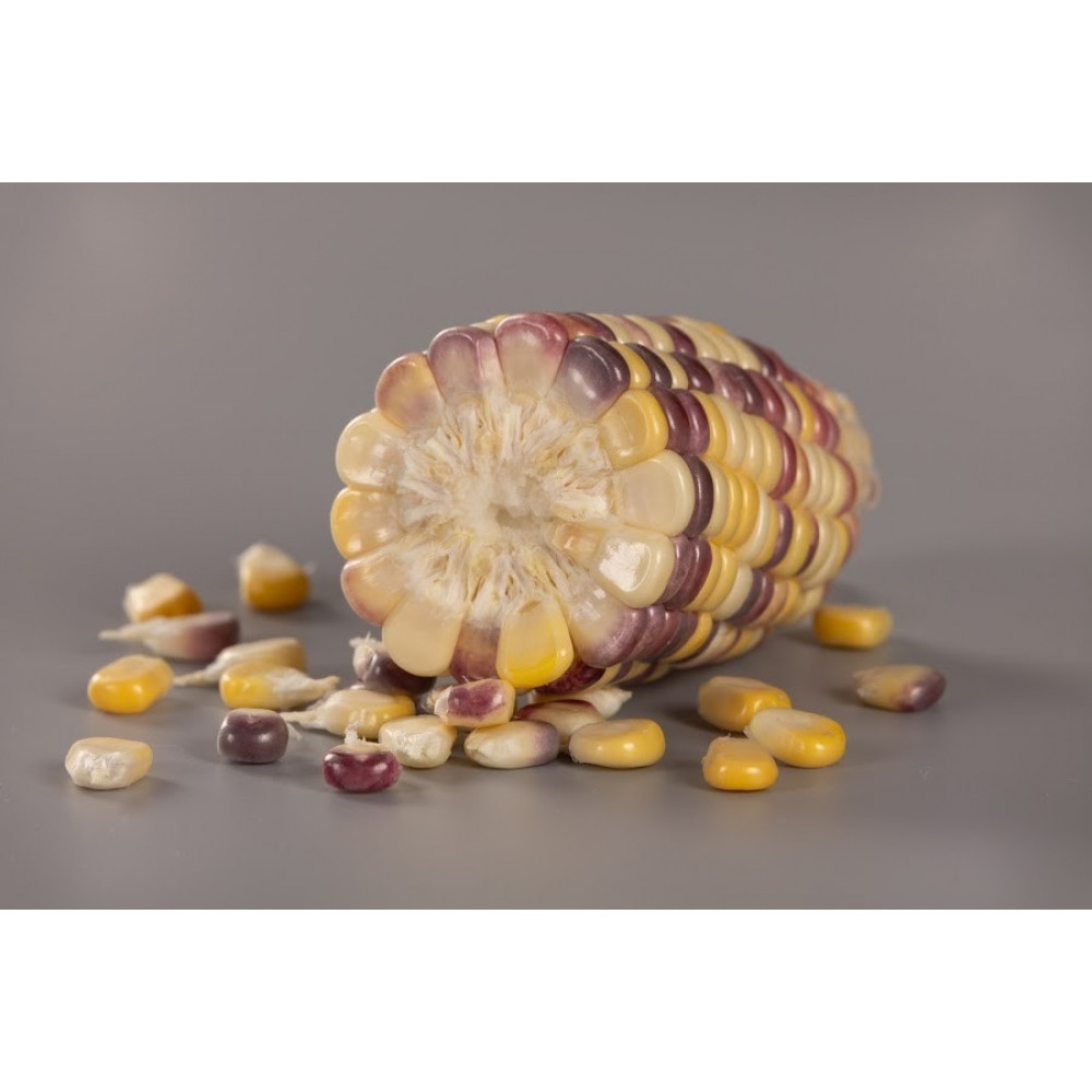 Двоколірна кукурудза — це гібрид, у середньому 70% фіолетово-синіх і 30% світло-жовтих зерен на качані. Вміст цукрів: понад 25%. Довжина качана – понад 24 см. Дуже добрі смакові якості цукрової кукурудзи. Стійкий до стресових умов вирощування. Конкурентні переваги – Відмінні показники врожайності за дотримання технології вирощування – 30-40 тис. качанів з гектара. Високий вихід товарної кукурудзи. Хороші показники товарності при транспортуванні та зберіганні.